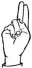 На ћирилици написано БУДИМИР РАЈКОВ састоји се из 13 слова [?]. Исписано ћириличном једноручном азбуком за глувонеме: